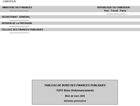 TABLEAU DE BORD DES FINANCES PUBLIQUES DU MOIS DE MARS 2025