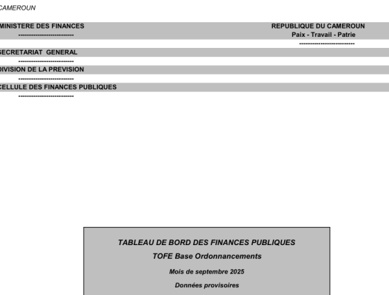 TABLEAU DE BORD DES FINANCES PUBLIQUES DU MOIS DE SEPTEMBRE 2025