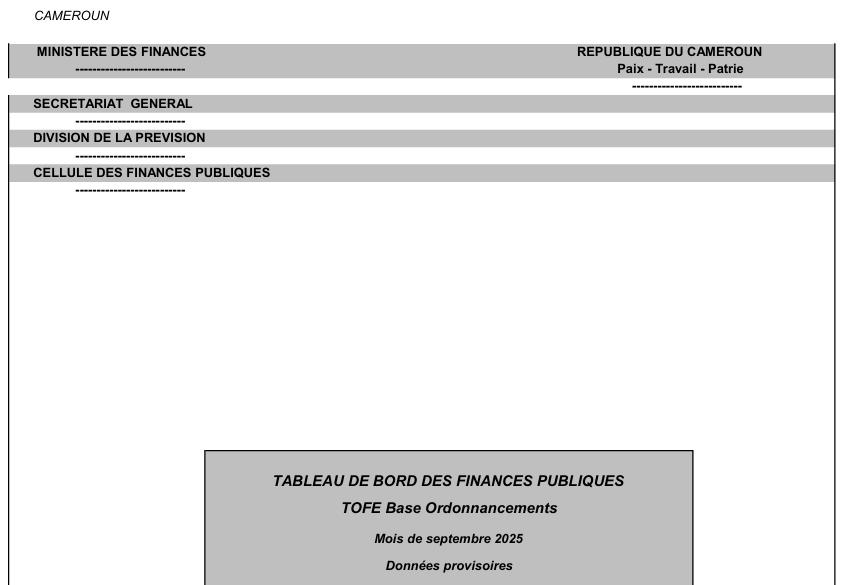 Le Tableau des Opérations Financières de l’Etat (TOFE) est un tableau qui rend compte de l’exécution du budget en terme de ressources et de dépenses pour une période donnée. Il constitue selon les standards internationaux, le principal tableau de synthèse retraçant les ressources recouvrées, les dépenses ordonnancées, le solde global base ordonnancements et les opérations de financement.